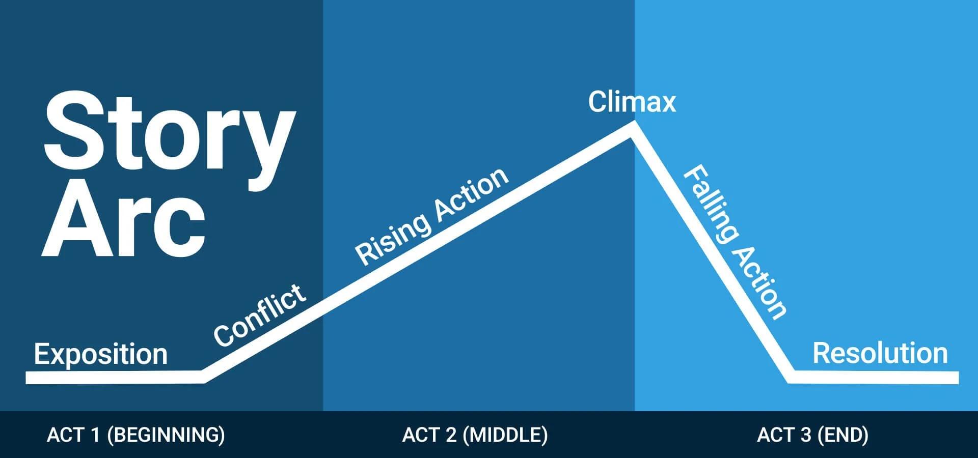So where to begin? Brands and businesses can learn a lot from the big players. Hollywood films, documentaries, and series captivate with a narrative arc, a structured journey from start to finish. It begins with setup, introducing characters and context, builds through rising action with escalating challenges, peaks at a climax with intense conflict, and closes with falling action and resolution. This arc hooks viewers by reflecting real struggles and triumphs, creating emotional, memorable stories.